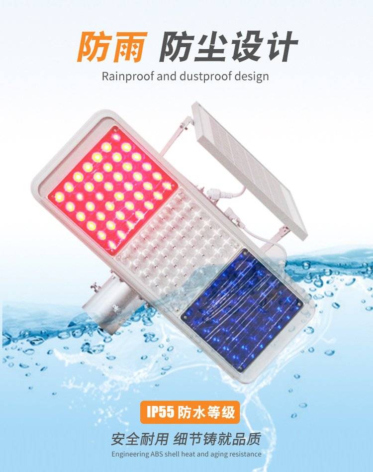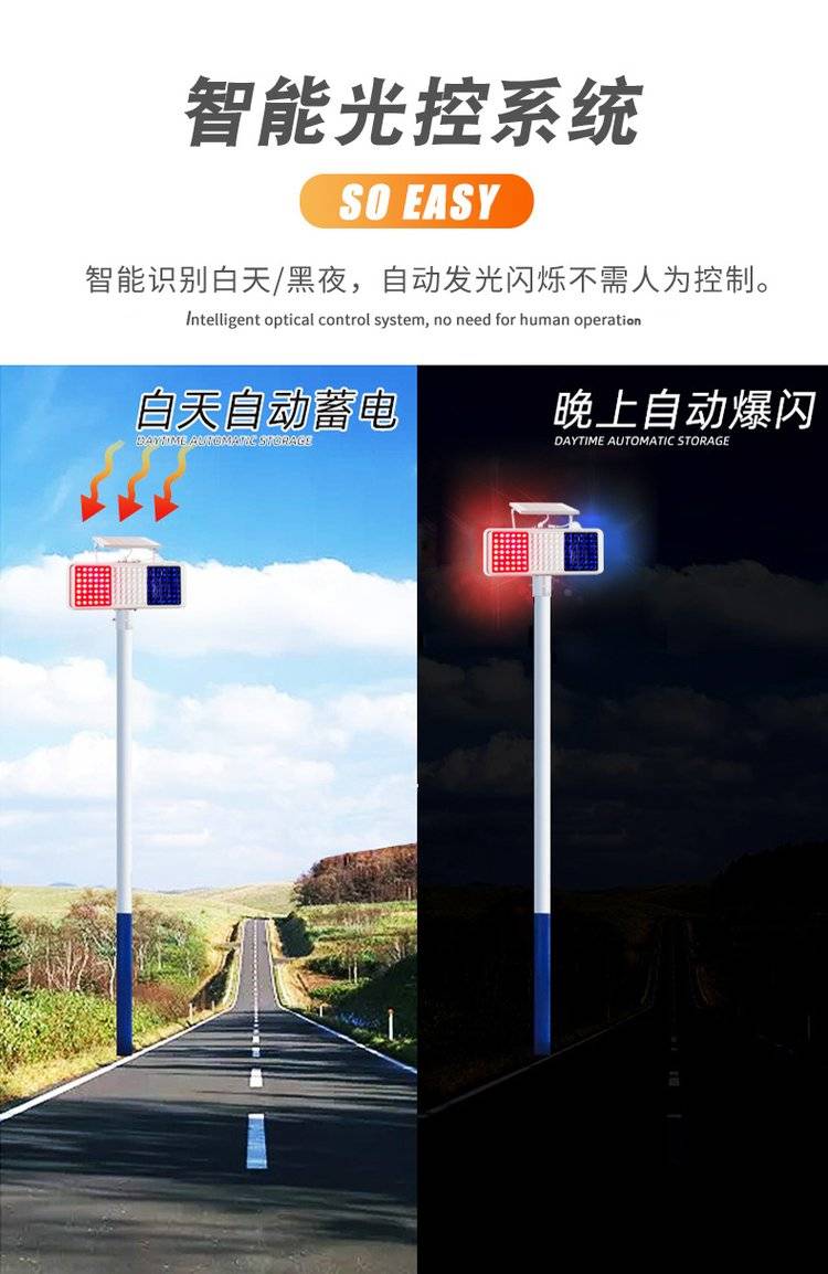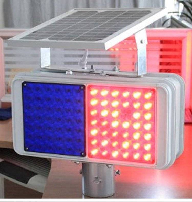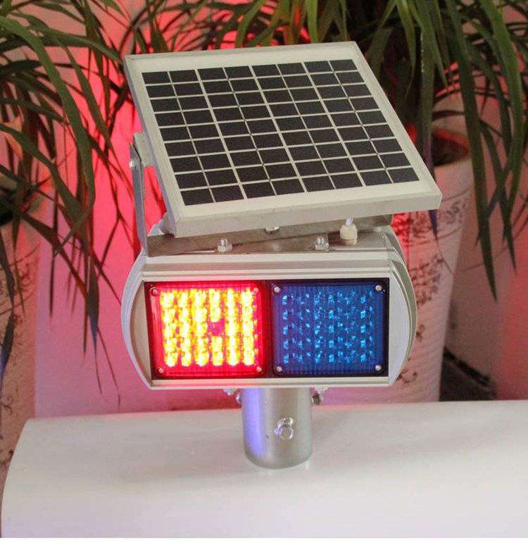 交通道路施工安全提示灯太阳能爆闪灯红蓝双面频闪警示灯